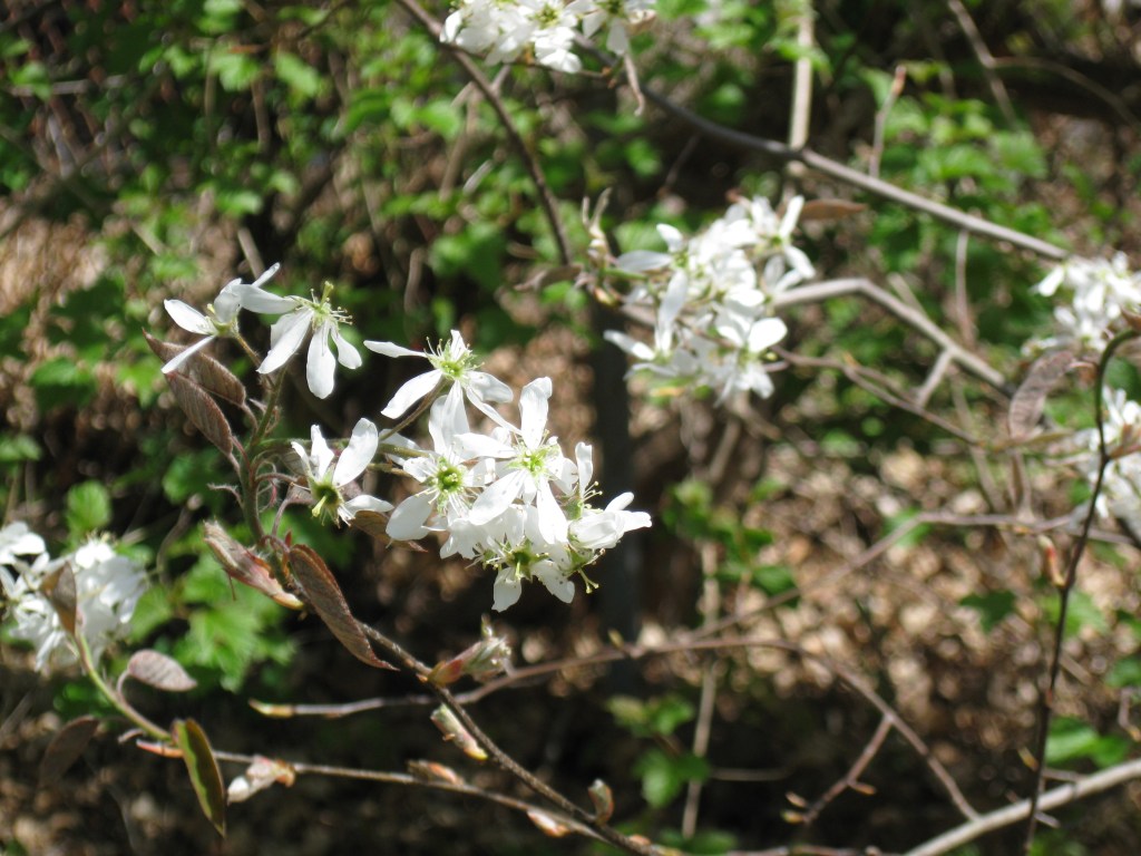 The Eastern Shadbush (Amelanchier canadensis) is one of 10 species of this native shrub in New England. Other names for Shadbush are Shadblow, Sarvis, and Serviceberry. In the past, when Allegheny Serviceberry (Amelanchier laevis) was in flower, it signaled circuit preachers to ride through Appalachian coves and “hollers.” It was also a sign that the ground was thawed enough for people to hold funerals and bury their dead. I really feel for those who cannot gather for memorial services for their loved ones now. But I also think about spring as a time for re-birth and the return of life.