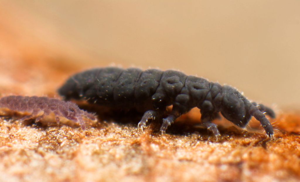 How can Springtails be active in winter’s bitter cold? Springtails have antifreeze proteins that are rich in the amino acid glycine. This protein attaches to ice crystals as they form in their bodies and prevents the crystals from getting larger. Some scientists speculate that Springtails come up to the surface of the snow because of overcrowding, or possibly lack of food. They will, however, return to the leaf litter below. Springtails feed on fungi, pollen, algae, and decaying organic matter.