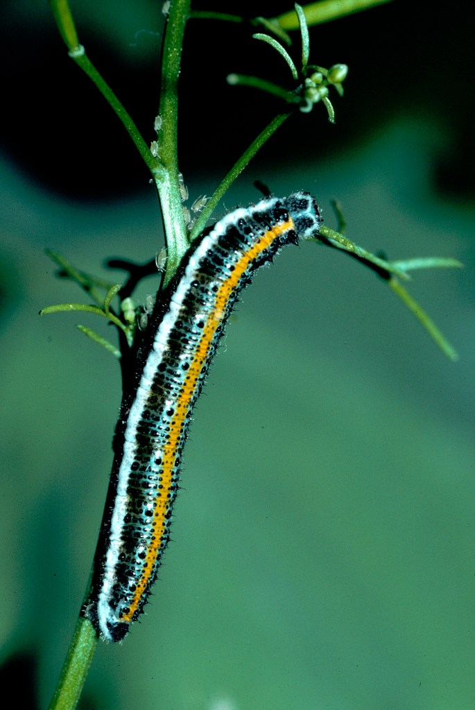 After mating, Falcate Orangetip females search for plants that are members of the mustard family. They usually deposit only one egg on each plant. At West Rock, females often lay eggs on Lyre-leaved Thale-cress (Arabidopsis lyrata).The larvae (caterpillars) often feed at night on flower buds, flowers, and fruit. They must feed and then develop as pupae before the spring-blooming plants complete their cycle.