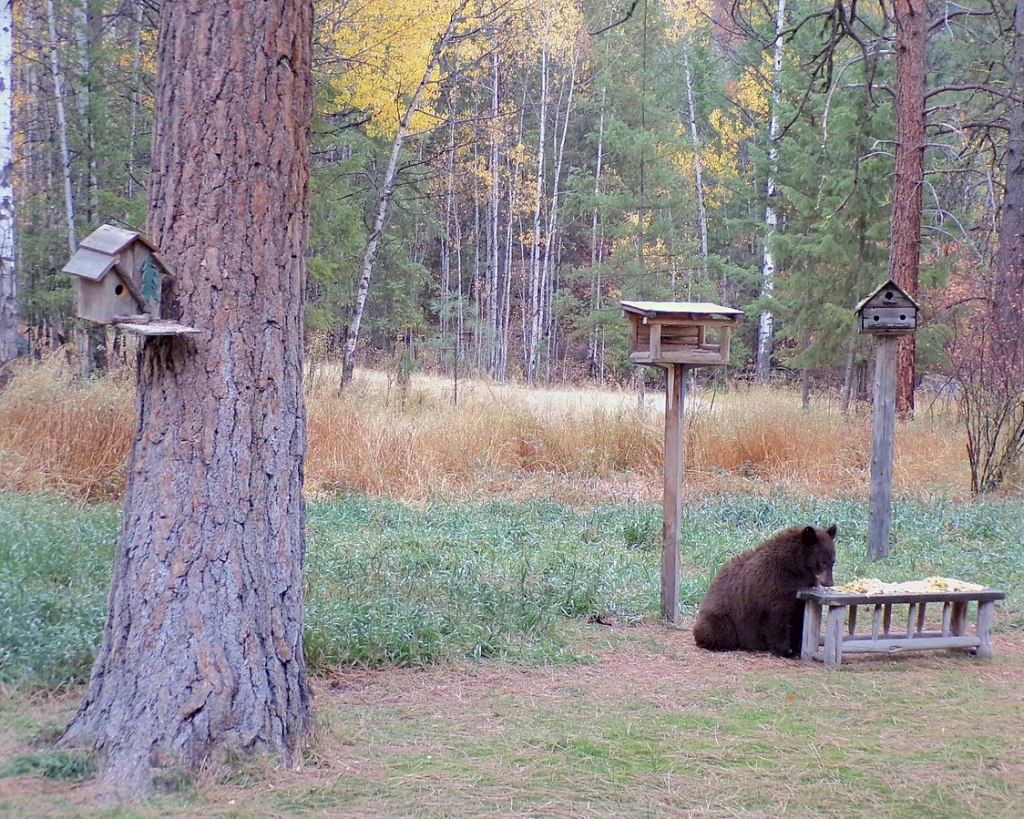 I recently had my feeders flattened by a American Black Bear (Ursus americanus) fattening up on bird seed before going into its winter sleep. Unfortunately, bears can learn which houses have feeders and make this a habit. They will make regular visits on a neighborhood circuit.