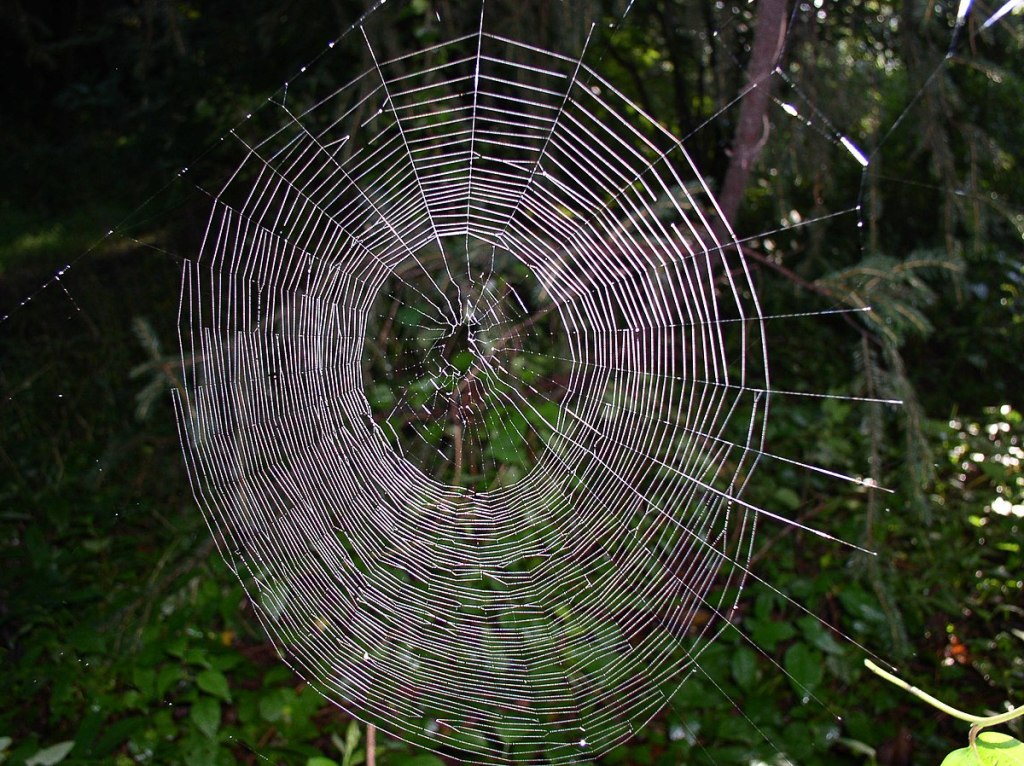 An orb web from the family Araneidae. The radiating “spokes” are not sticky and let the spider travel quickly to secure prey. The concentric circles are sticky and catch prey. Photo by Beatriz Moisset / CC BY-SA (https://creativecommons.org/licenses/by-sa/4.0).