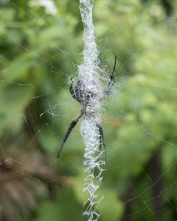 The stabilimentum is a zig-zag patterned part of the web; there are different theories as to its purpose. Photo by Rhododendrites / CC BY-SA (https://creativecommons.org/licenses/by-sa/4.0).